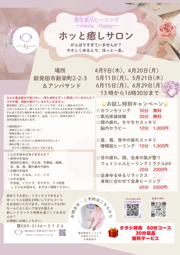- イベント価格にてヒーリング